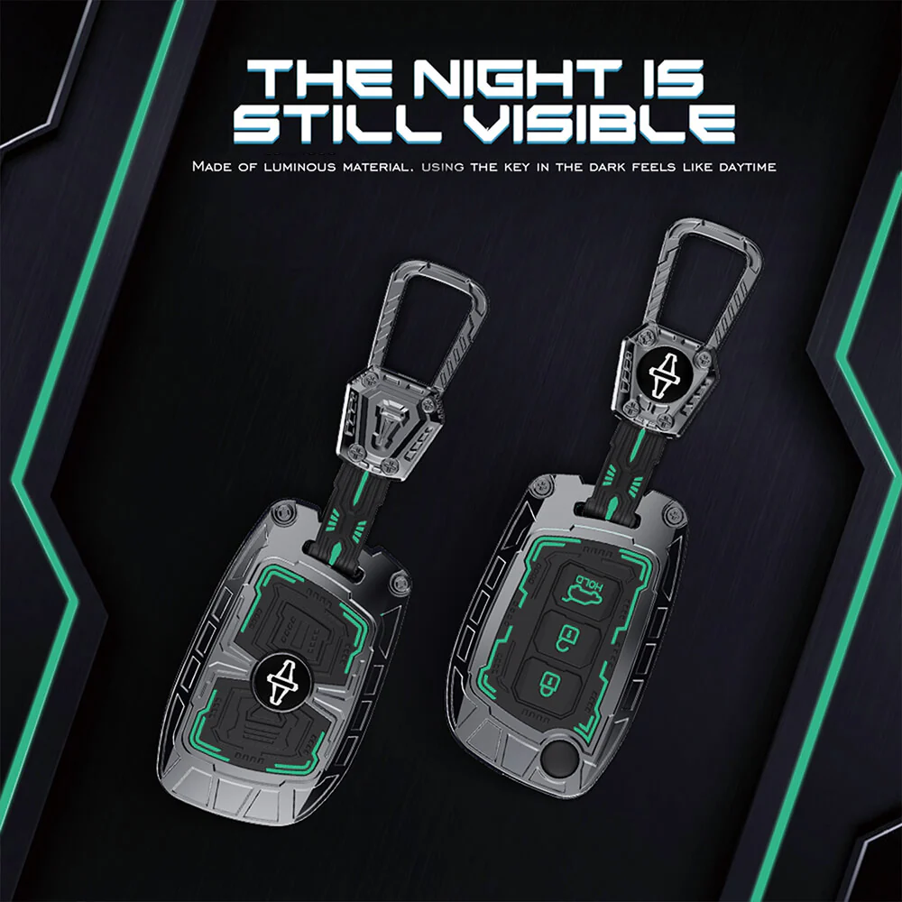 Iron Core Series Car Key Cover Compatible with Hyundai i20, Creta, Venue, Tucson, Alcazar, Grand I10, Aura, Xcent, Exter, 3 Button Flip Key, Zinc Alloy, Luminous