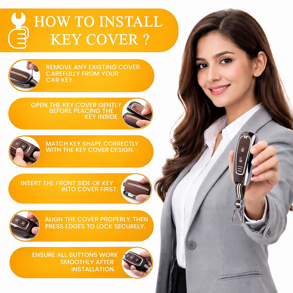 - PREMIUM MATERIALS: Crafted with high-grade zinc alloy and silicone, this key cover offers excellent durability and a strong, stylish chrome metal brown finish.