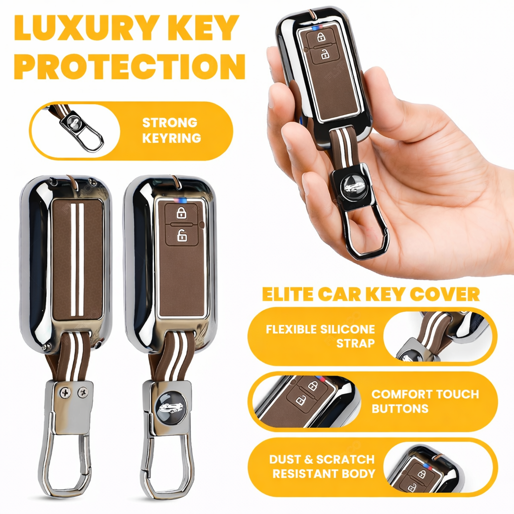 Metal Silicon Key Cover Compatible with Maruti Suzuki jimny Baleno Grand Vitara XL6 Swift New Brezza 2022 Ertiga Dzire 2 Button Key Special Feature Visibilitye in Low-Ligh Condition
