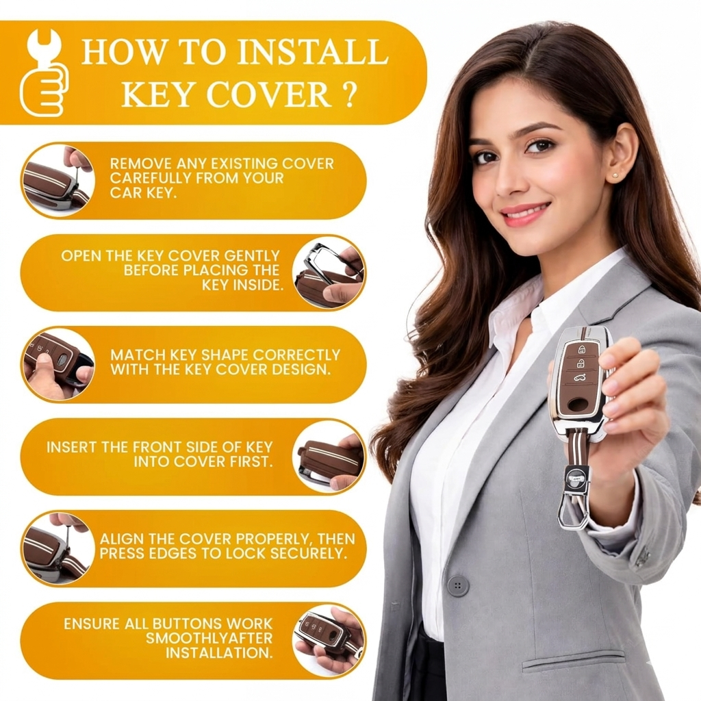The glow-in-the-dark feature helps you easily locate your keys in low light. This key cover ensures a perfect fit and smooth button operation without removing the case. The attached keychain adds convenience and gives a premium stylish look, perfect for everyday use.