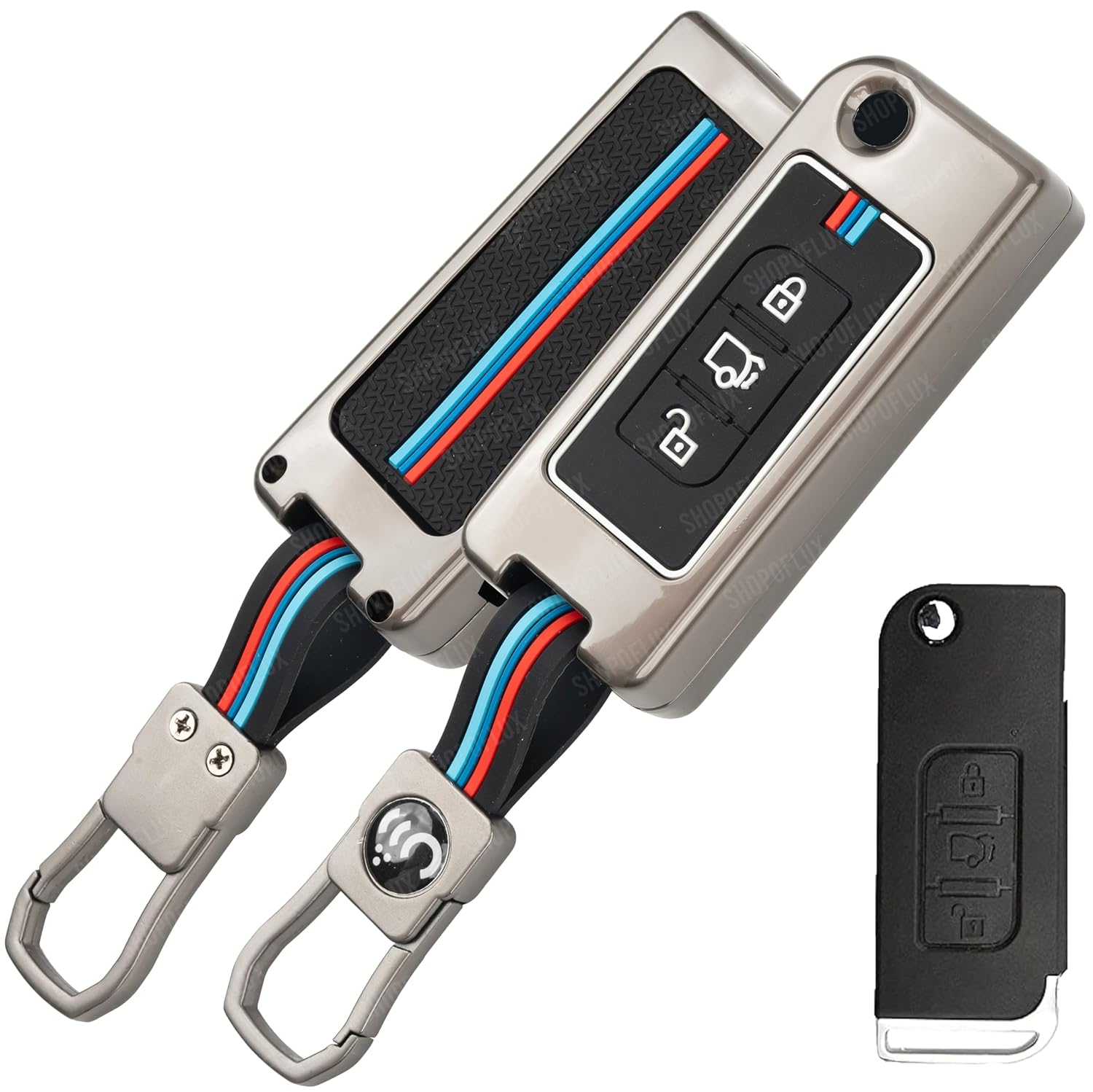 - Metal Key Cover Compatible for Mahindra XUV 500 Old 3 Button Flip Key