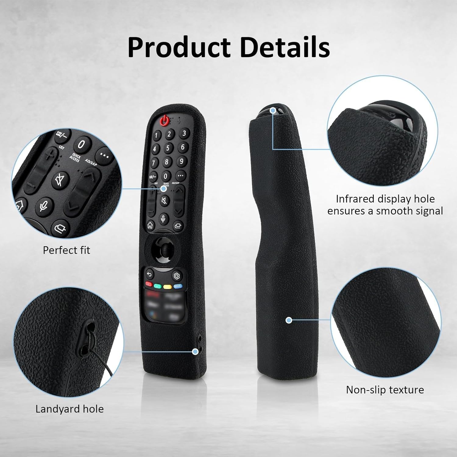 ⭐【Universal Compatibility】 Specifically designed for LG Magic Remote models AN-MR21GA, AN-MR21GC, AN-MR22GN, AN-MR22GA, AN-MR23GN, AN-MR23GA, AN-MR24GN, and AN-MR24GA, this remote control cover ensures easy access to all ports, buttons, and functions. 【Note】 Remote control not included.